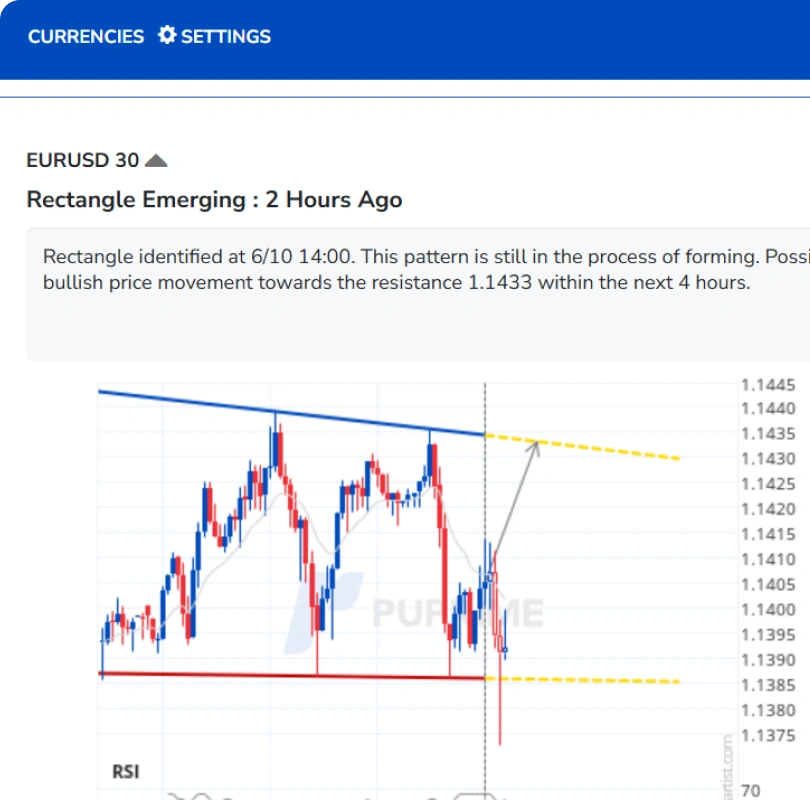 Autochartist สแกนตลาดอย่างต่อเนื่องในพื้นหลังขณะคุณเทรด