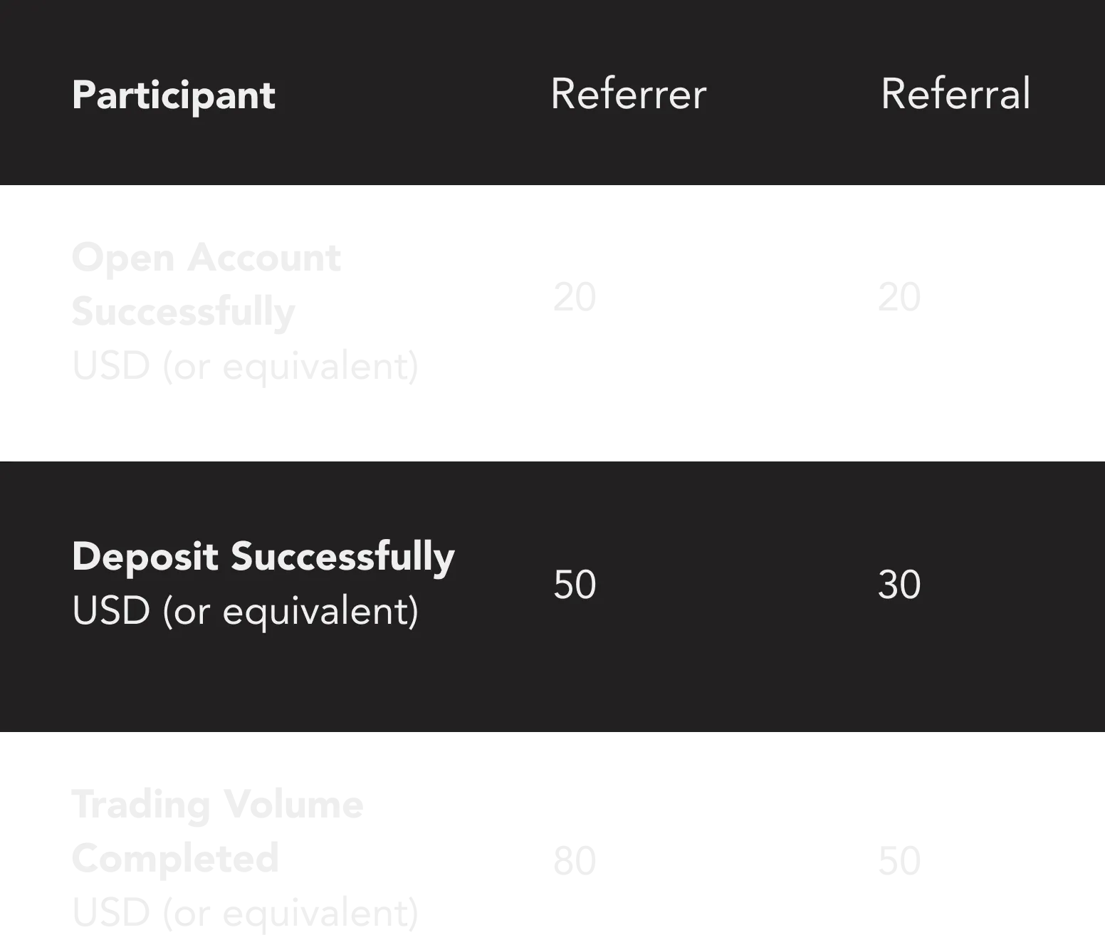 6.If the referrer and referral are from Tier2 countries and meet the following conditions: The referrer and the referral are entitled to receive a reward in the amount of 100 USD and 50 USD (or equivalent).