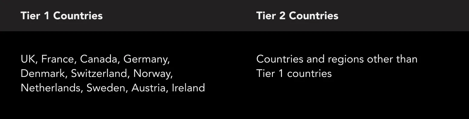 7.Country Tiers: